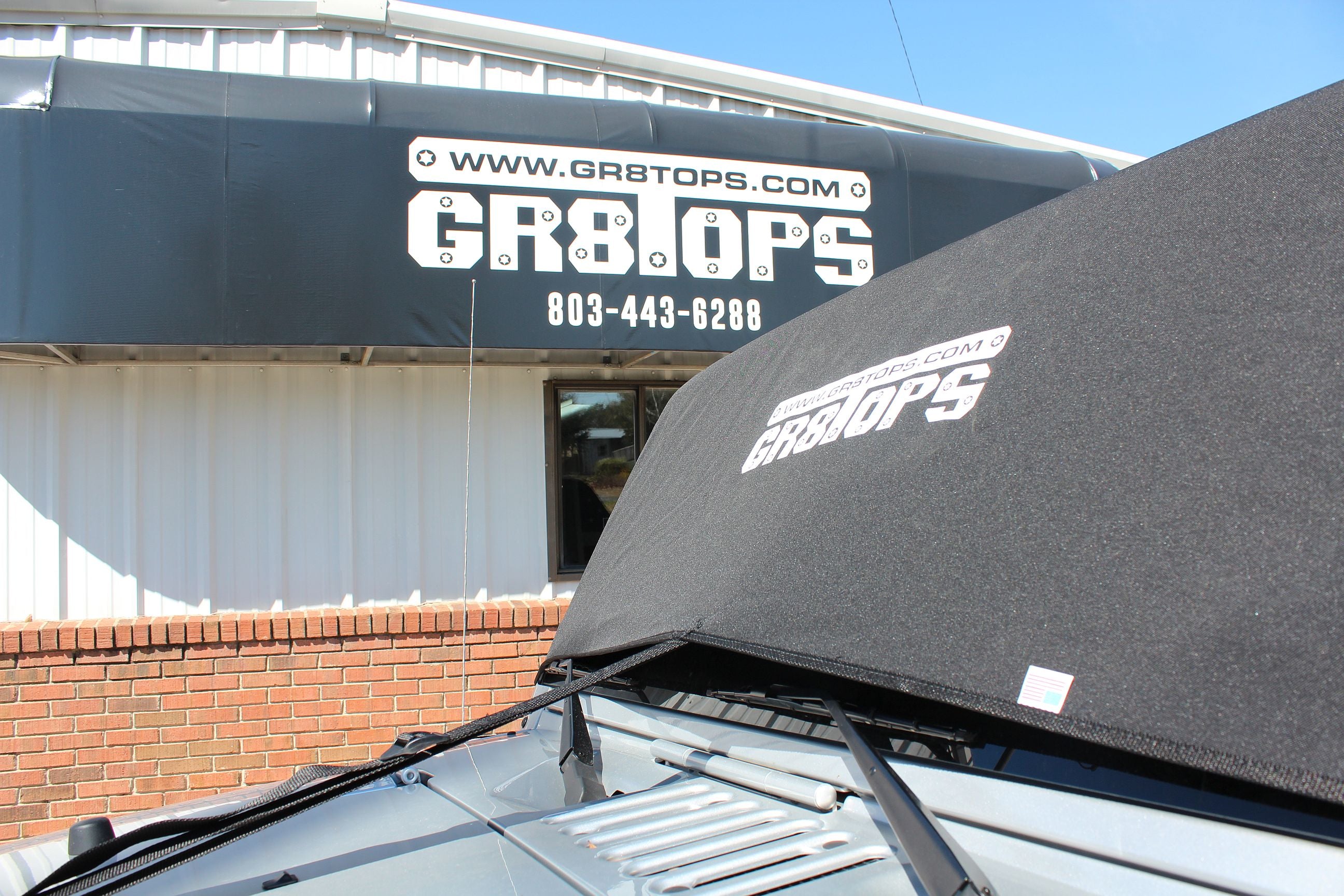 GR8TOPS Jeep Jackets are constructed from high-quality waterproof vinyl-backed material and are made to cover the Jeep from the windshield back —including the full door openings. Jeep Jackets are equipped with eight straps to ensure they stay in place in any wind or weather.